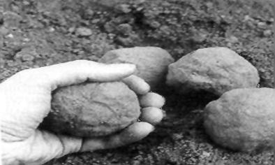 Die nach ihrer Entnahmestelle gekennzeichneten, erdfeuchten geformten Kugeln lässt man 8 Tage an der Luft durchtrocknen. Wem das zu lange dauert, der lässt die Kugeln 1 Tag antrocknen und legt sie dann bei 60 Grad einige Stunden im Backofen. Wenn es die Frau erlaubt. |