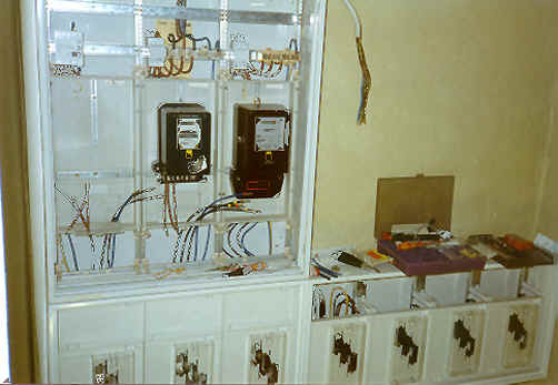 | 2. Der Strom war so wirr verlegt und zu einem Kabelsalat zusammen gefasst, dass selbst Fachleute den Kopf schüttelten und nur mit dem Seitenschneider winkten. So wurde auch die vollständige Stromversorgung in der Wohnung lahm gelegt. Da man auch Kabel von einem Zimmer ins Andere mit einer „Freileitung“ durch die Fensterleibung nach Außen und in ein anderes Fenster zurück gelegt hatte waren auch die Fenster, die jedoch sowieso erneuert werden sollten, für uns unbrauchbar. | ![]() |