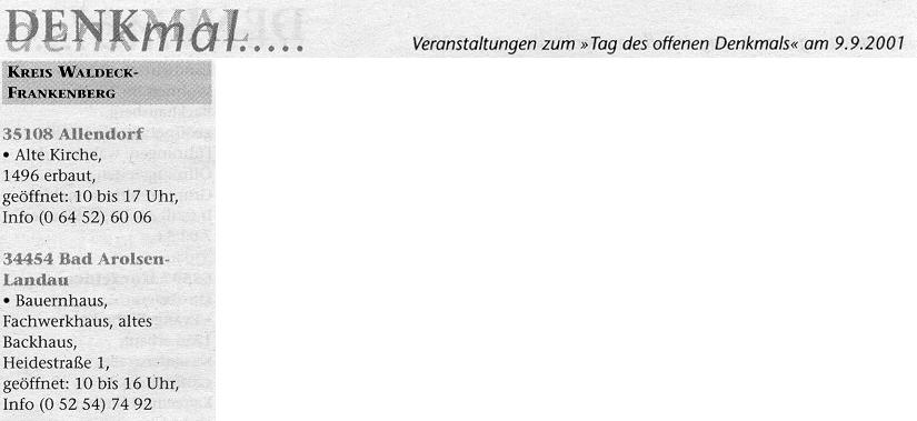 Zum Tag des offenen Denkmals Waldecker Landeszeitung